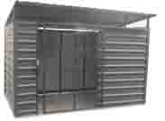 • w wersji podstawowej w wiacie montowana jest jedna para drzwi jednoskrzydłowych przesuwnych na dowolnej ścianie, drzwi w kolorze konstrukcji wypełnione siatką zgrzewaną o oczku 40x40mm i grubości drutu 3mm, drzwi zamykane na zamek z kompletem 3 kluczy